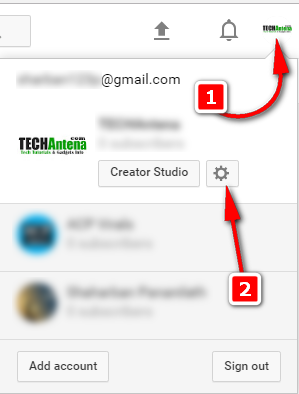 Step 1: Open YouTube.com website and click on your account icon, and click on gear icon near to Creator Studio.