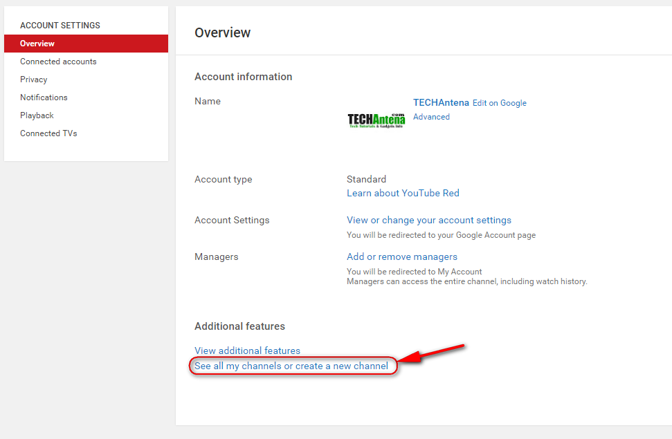 Step 2: From the left side panel, in the Account Settings, make sure that you have chosen the Overview. And then click on See all channels or create a new channel.