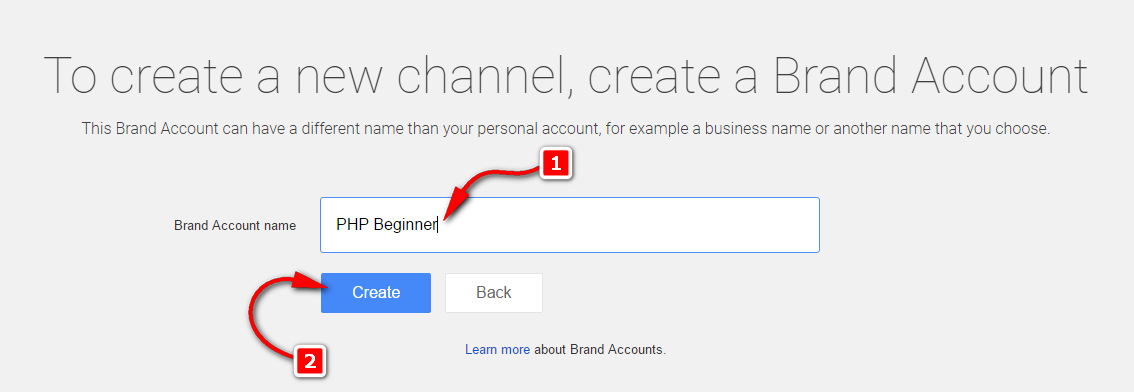 Step 4: In this window provide the name for your new YouTube Chanel, and click on the Create button.