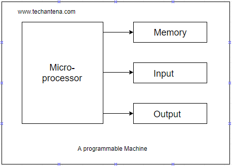 A typical programmable machine can be represented with four components: microprocessor, memory, input and output.