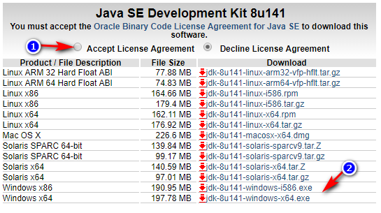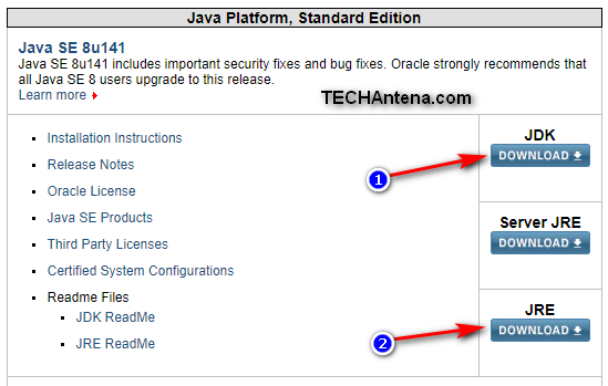 Step 2: To download the Java JDK, click on Download JDK (1 in the image) button.