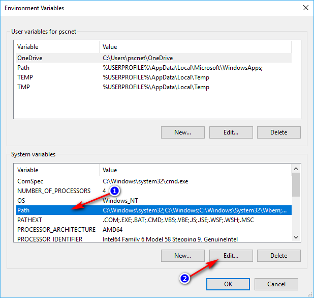 Step 4: Here you can edit your system variables. From the System Variables click on Path and then click Edit.