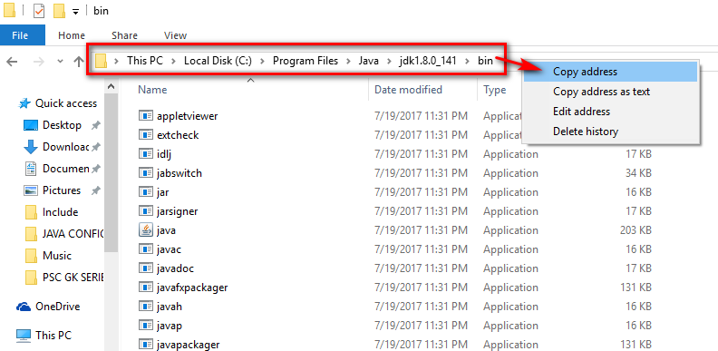 Step 7: Once you opened the bin folder, copy the address of the bin folder from the address bar as shown in below screenshot. (Right click on the address bar to copy the address.)