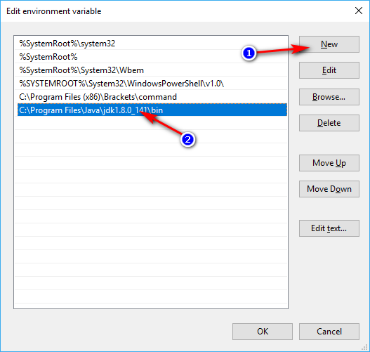 Step 8: Now go back to the step 4, in the window edit environment variable, click new and paste the bin folder’s address in the path field.